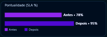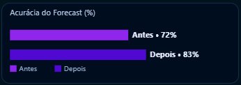 Resultado: previsões assertivas +11 p.p. • redução de custos -9% em 6 meses
