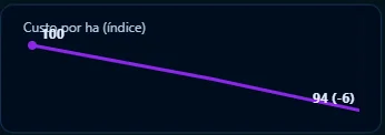 Resultado: produtividade +9% • custo/ha -6% • risco de preço mitigado