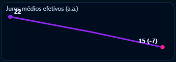 Resultado: juros médios -32% • alongamento +18 meses • risco de liquidez mitigado