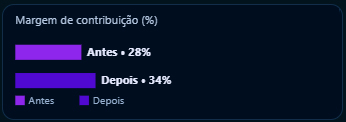 Resultado: lead time -18% • M+5→M+2 • margem +4 p.p.