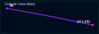 Resultado: ciclo caixa -21 dias • necessidade de capital -35%